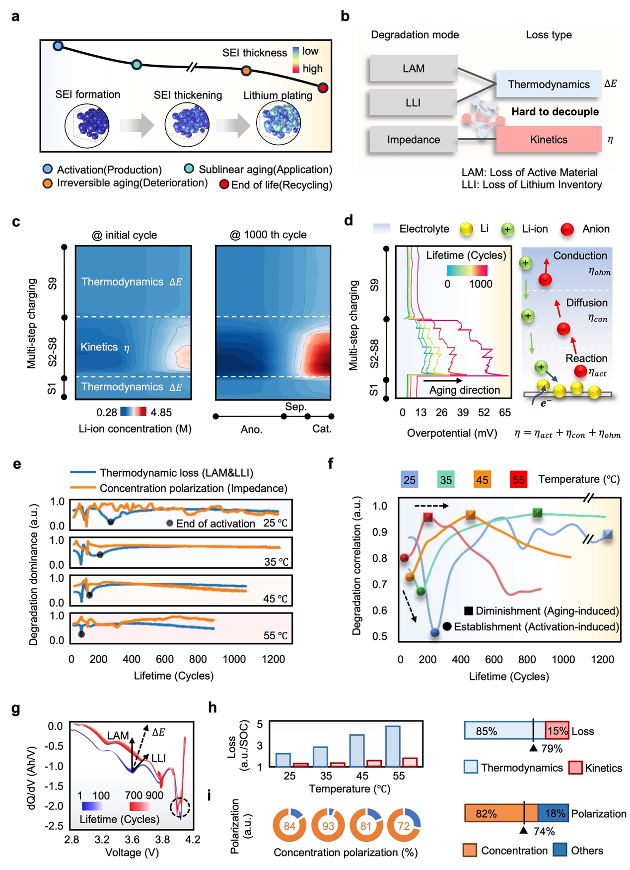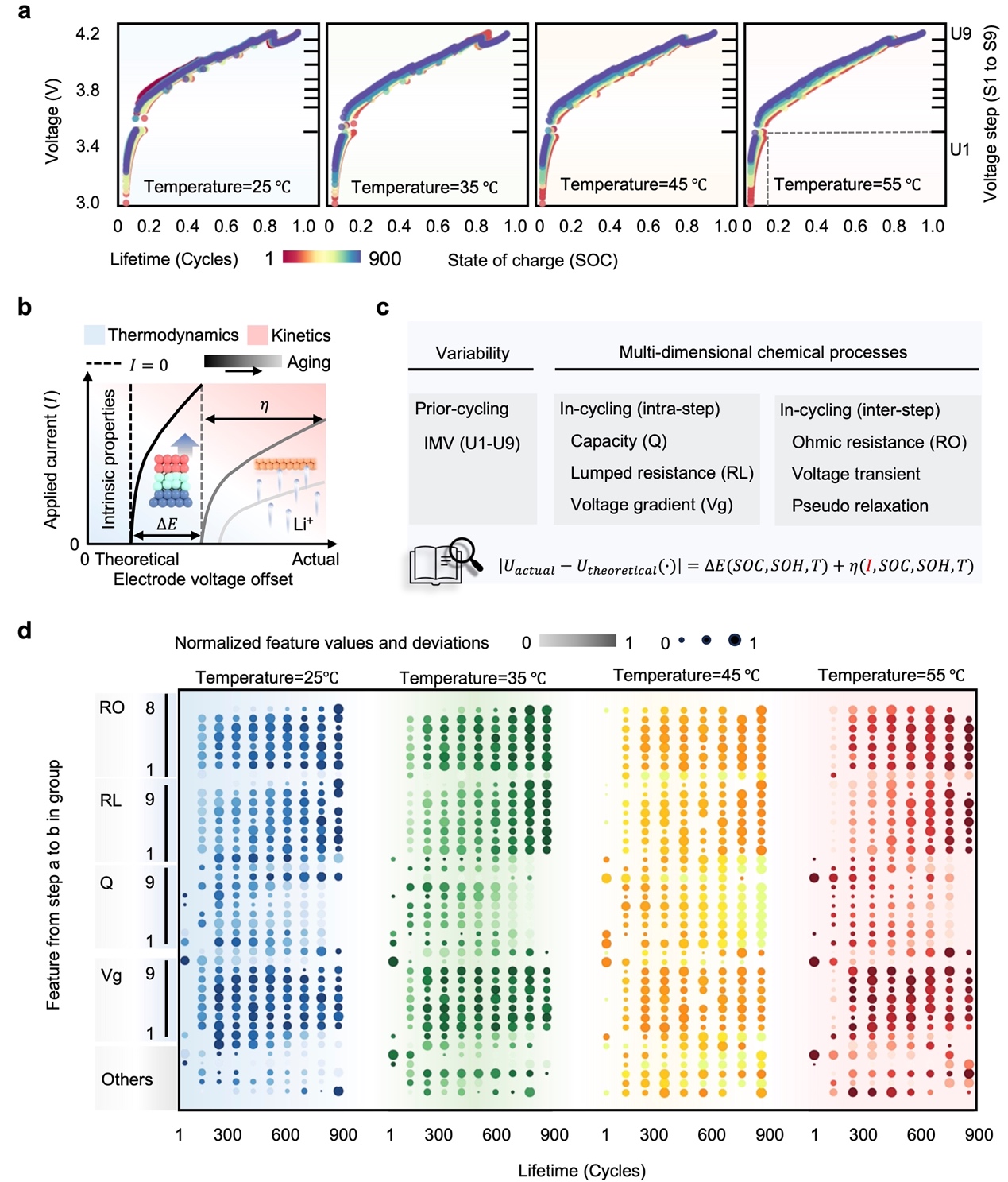 相关研究成果以“基于物理信息学习的电池衰减轨迹早期预测”(Non-destructive degradation pattern decoupling for early battery trajectory prediction via physics-informed learning)为题发表在《能源与环境科学》(Energy & Environmental Science)期刊上,并被选为封面论文。beat365英国官方网站深圳国际研究生院2022级博士研究生陶晟宇为论文第一作者,2021级硕士研究生张梦天、2023级硕士研究生赵子曦为共同第一作者。beat365英国官方网站深圳国际研究生院张璇、周光敏、李阳副教授,重庆大学机械与运载工程学院胡晓松教授为共同通讯作者。合作者包括欣旺达动力科技股份有限公司徐中领博士、于文军博士、刘瑶俊团队,beat365英国官方网站车辆与运载学院郝瀚副教授团队,格罗宁根大学能源与可持续发展研究所孙鑫助理教授,麻省理工学院化学工程学院车云弘博士和加州大学伯克利分校土木与环境学院斯科特·莫拉(Scott Moura)副教授。beat365英国官方网站车辆与运载学院2023级博士研究生李昊阳,深圳国际研究生院马睿飞对技术经济分析作出重要贡献。研究得到山西省能源互联网研究院、beat365英国官方网站深圳国际研究生院、深圳市鹏瑞基金会、广东省基础与应用基础研究基金等单位和科研经费的支持。