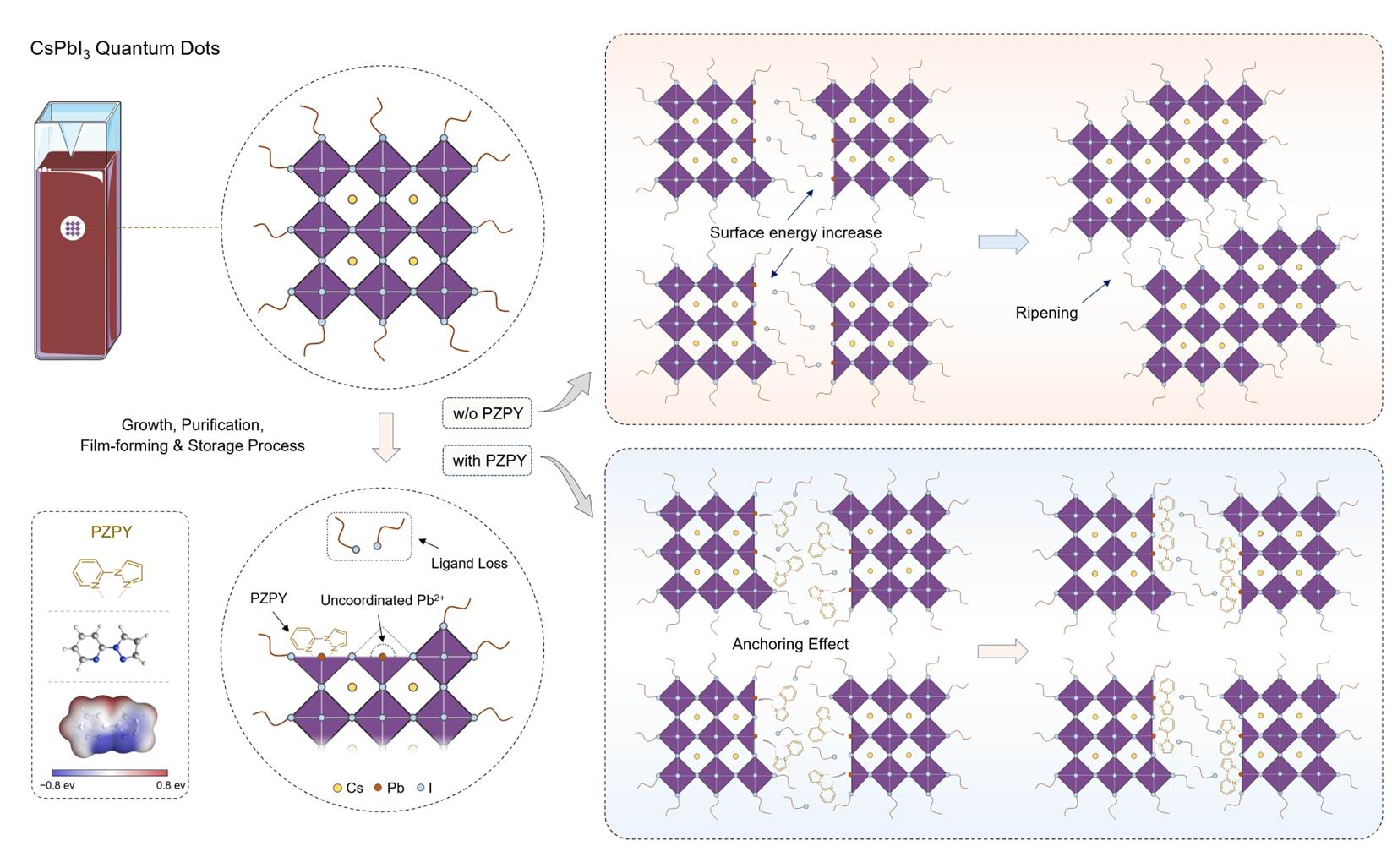 相关研究成果以“分子诱导的钙钛矿量子点熟化控制策略实现高效稳定的发光器件”(Molecule-Induced Ripening Controlin Perovskite Quantum Dots for Efficient and StableLight-Emitting Diodes)为题,于3月14日发表于《科学·进展》(Science Advances)。