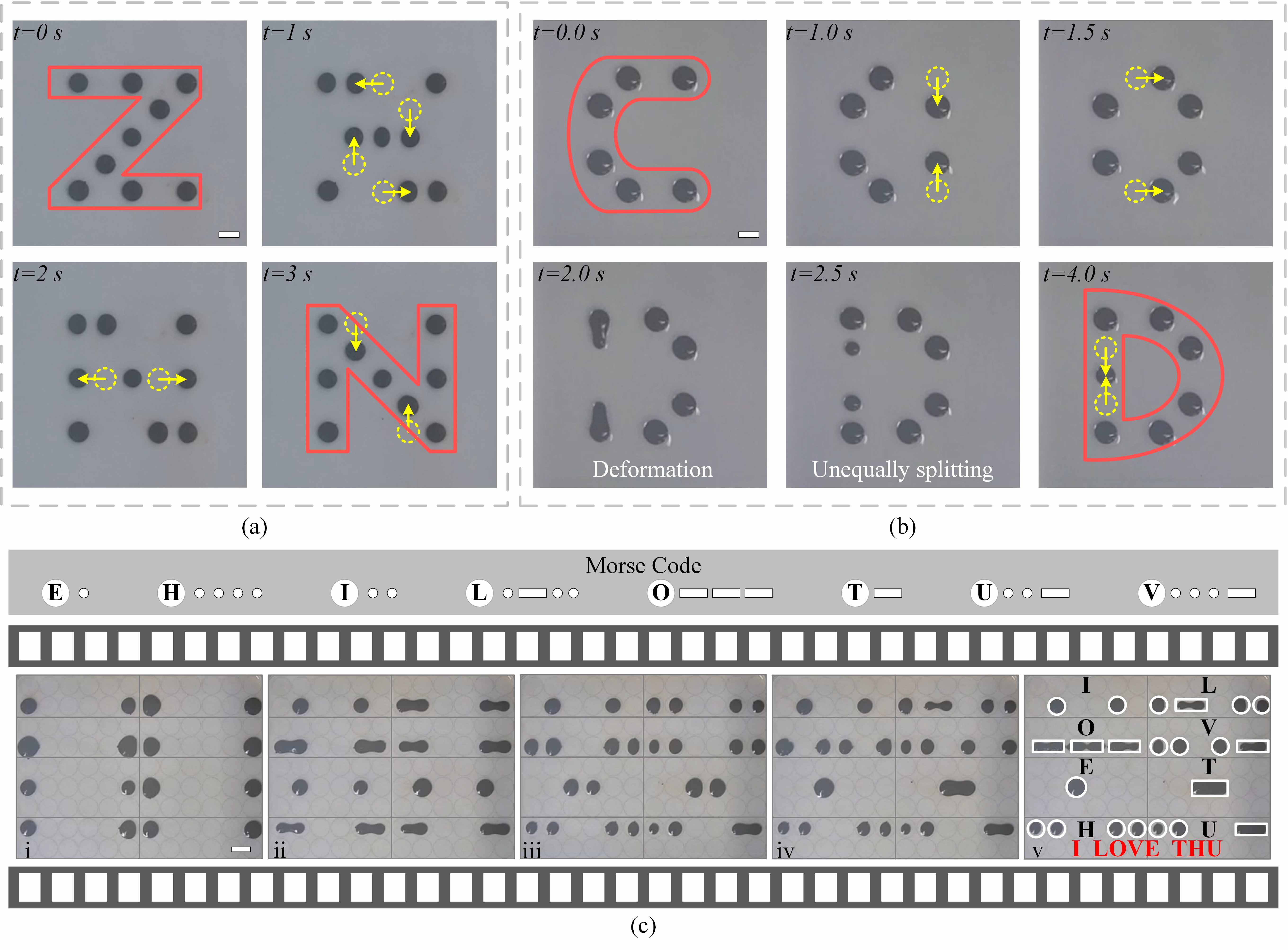近期,beat365英国官方网站深圳国际研究生院副教授曲钧天团队围绕磁流体液滴机器人在大规模、独立与可编程操控方面的关键技术难题,成功开发出一套基于电磁线圈阵列的可编程操控平台。通过灵活部署液滴机器人,该平台在数字图案显示、信息编码及流体操作等领域展现出广泛的应用潜力。
