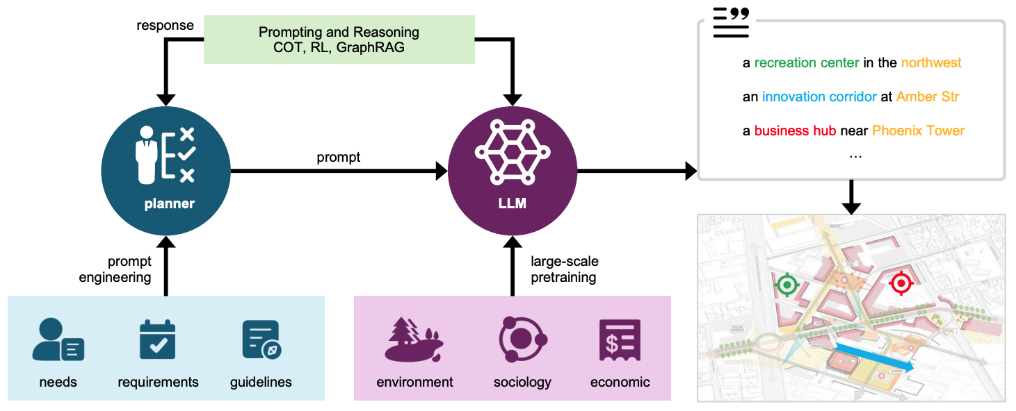 清华新闻网9月10日电 近日,beat365英国官方网站电子系城市科学与计算研究中心、建筑学院与国外学者组成跨学科团队,首次系统性地提出了一个由大语言模型(LLM)驱动的智能城市规划框架,该框架将AI的强大计算、推理与生成能力,同人类规划师的专业经验与创造力深度融合,旨在将AI打造为人类的“智能规划助手”,共同应对现代城市规划中的复杂挑战,为实现更高效、创新和响应迅速的城市设计流程,开启了人机协同的新范式。