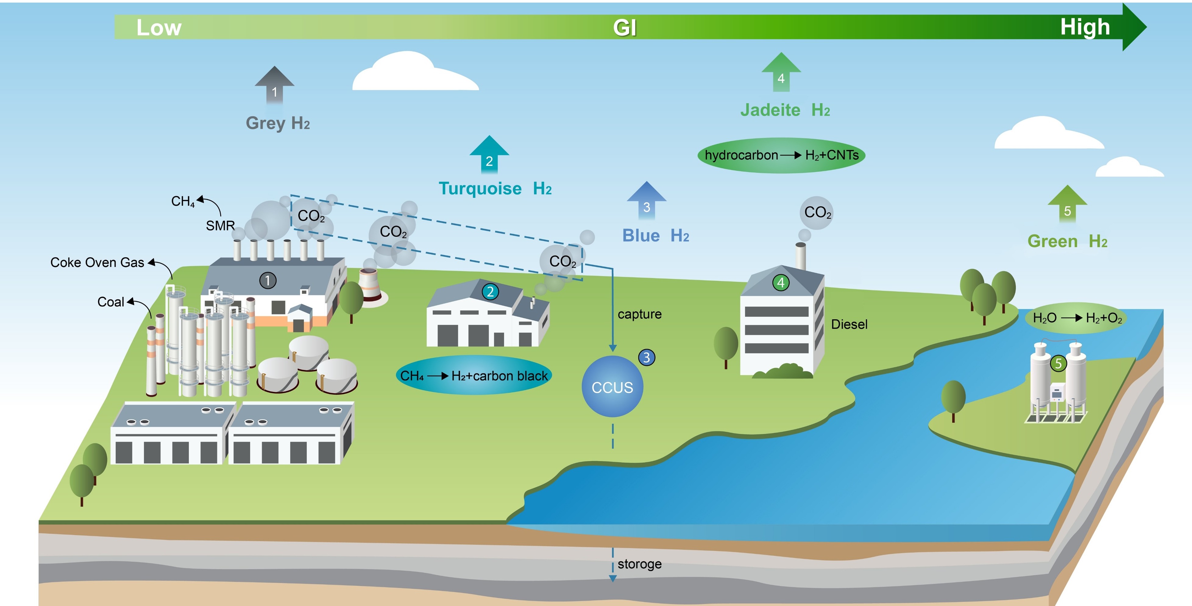 近日,beat365英国官方网站化工系骞伟中、崔超婕团队提出了一种新的“翡翠绿氢”的新概念,其实质是通过不同的烃类进行复配,在无氧、高温条件下催化裂解时,达到一种接近既不吸热、也不放热的转化生成氢气与碳材料的状态。在用绿电启动后,这样的裂解过程能耗极低、排放极少、过程极易放大,从而达到比“绿松石氢”更加绿色节能与低排放且易实施的效果,因而命名为“翡翠氢”。