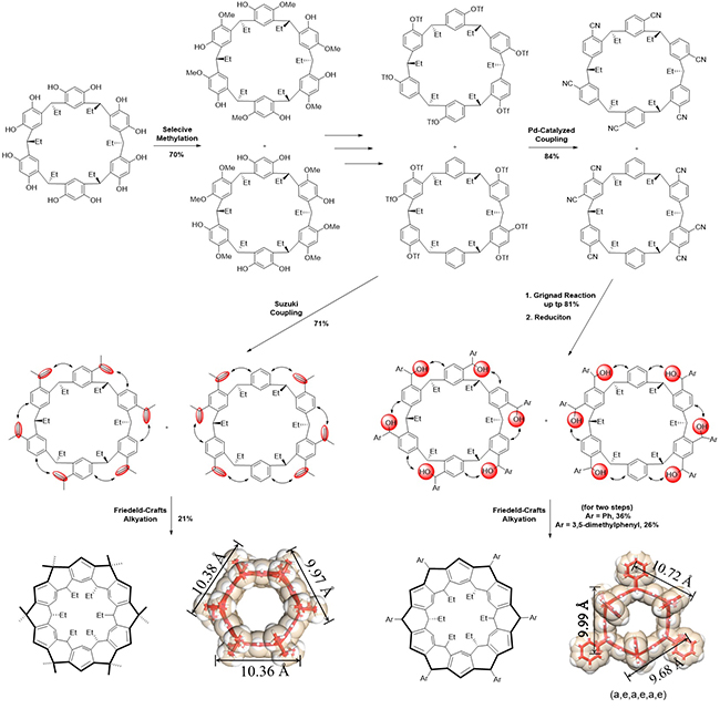 图 4. 氢化环带[12]芳烃的合成及其纳米尺寸空腔