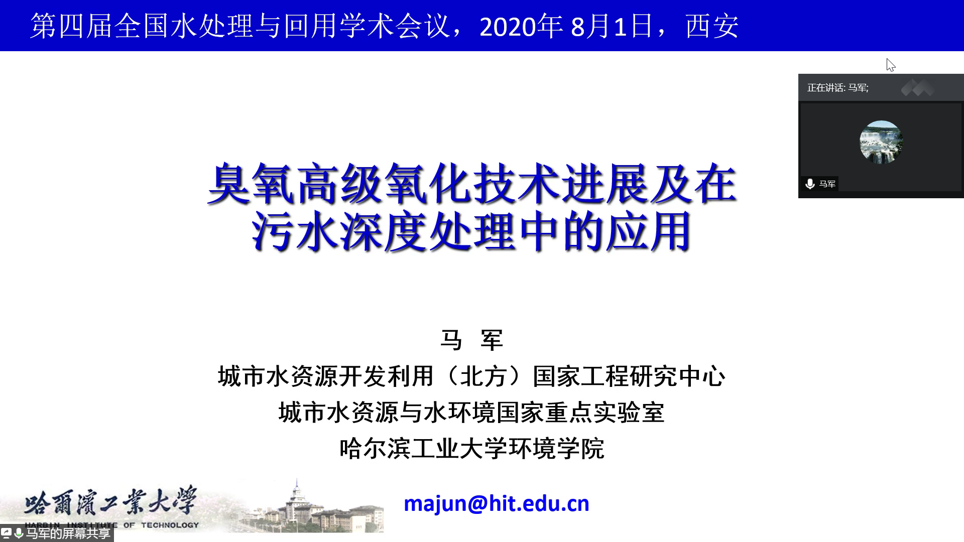 中国工程院院士、哈尔滨工业大学教授马军作了题为“臭氧高级氧化技术研究进展及污水深度处理中的应用”的特邀报告。他介绍了城市水资源利用现状及污水处理和资源化利用对策,并结合大量工程案例,详细阐述了臭氧高级氧化技术的技术原理、研究进展和应用要点,为未来水处理与回用技术发展和市场需求指明了方向。