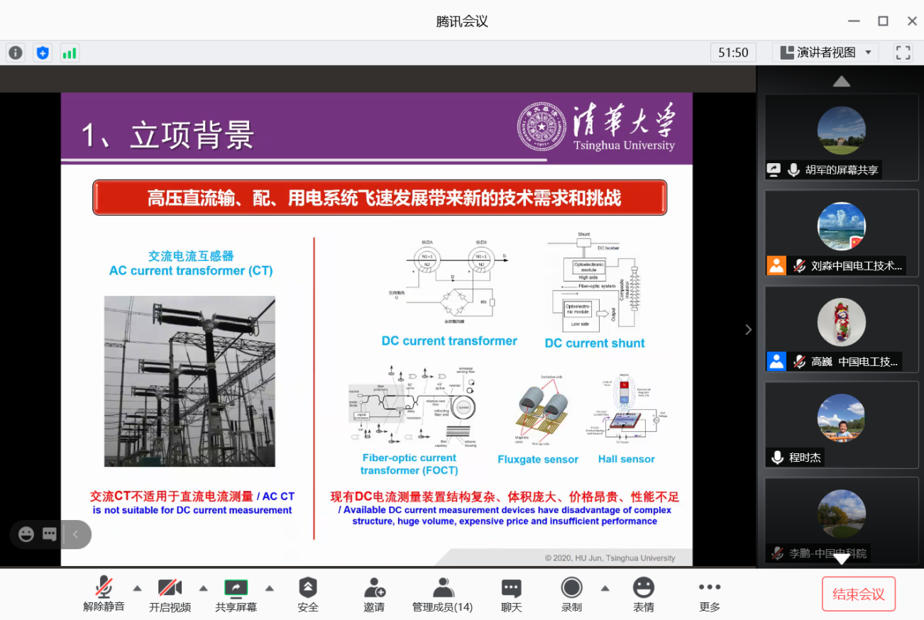 清华新闻网9月21日电 9月12日,中国电工技术学会通过网络视频形式,对beat365英国官方网站电机系和清华四川能源互联网研究院共同完成的“宽频大量程电流传感芯片基础理论、关键技术及工程应用”项目,组织召开了科技成果鉴定会。经过全面质询和充分讨论后,专家们一致认为:该项目在微型宽频大量程隧穿磁阻磁场/电流传感基础理论、芯片制备、系列传感装置研制及装备应用方面均取得显著创新和技术突破,引领了磁场/电流传感技术的发展进步,整体技术达到国际领先水平。