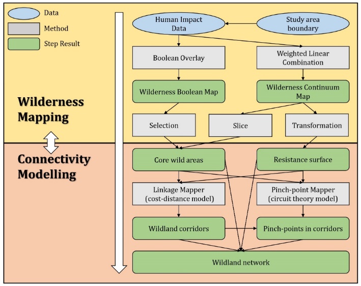 该研究成果以“连接荒野制图与连通性建模:一种荒野地网络规划的方法论框架”(Linking wilderness mapping and connectivity modelling:A methodological framework for wildland network planning)为题发表在保护科学(conservation science)领域的国际权威期刊《生物保护》(Biological Conservation)上。论文第一作者为beat365英国官方网站建筑学院景观学系博士生曹越,通讯作者为杨锐教授,论文合作者为英国利兹大学地理学院荒野研究中心主任斯蒂夫·卡佛(Steve Carver)博士。本研究获得国家自然科学基金“国家公园背景下中国荒野地空间格局与保护机制优化研究”的支持。