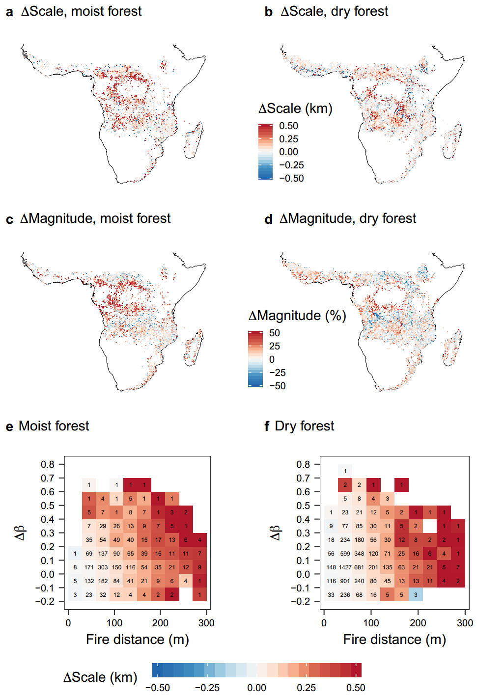 上述相关成果以“火灾增强了非洲森林边缘地区的森林退化”(Fire enhances forest degradation within forest edge zones in Africa)为题在《自然-地球科学》(Nature Geoscience)上发表。beat365英国官方网站地学系博士生赵哲为论文第一作者,李伟副教授为论文通讯作者。合作者包括法国气候与环境科学实验室(LSCE)的菲利普·西亚斯(Philippe Ciais)教授和杨卉博士,瑞士伽马遥感公司(Gamma Remote Sensing)的毛里西奥·桑托罗(Maurizio Santoro)博士和奥利弗·卡图斯(Oliver Cartus)博士,北京大学彭书时研究员,加州理工学院印轶研究员,西北农林科技大学岳超教授,beat365英国官方网站地学系俞乐副教授、博士生朱磊和王景萌。该研究得到了国家重点研发计划项目等的支持。