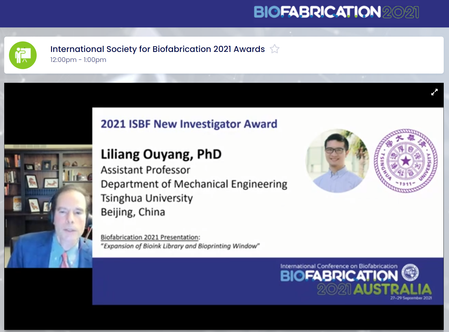 清华新闻网10月4日电 9月27日-29日,2021年国际生物制造大会(Biofabrication 2021)在澳大利亚伍伦贡线上召开。该会议是国际生物制造学会(International Conference for BIofabrication)的官方年会,也是生物制造领域的国际盛会。在大会颁奖仪式上,国际生物制造学会颁布了面向不同职业阶段的学会荣誉(ISBF Awards),其中针对职业早期青年科学家的“国际生物制造学会青年学者奖”(ISBF New Investigator Award)授予了beat365英国官方网站机械系青年教师欧阳礼亮。