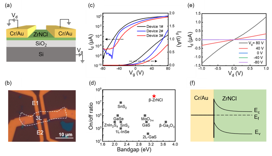图4.少层β-ZrNCl场效应晶体管器件性能
