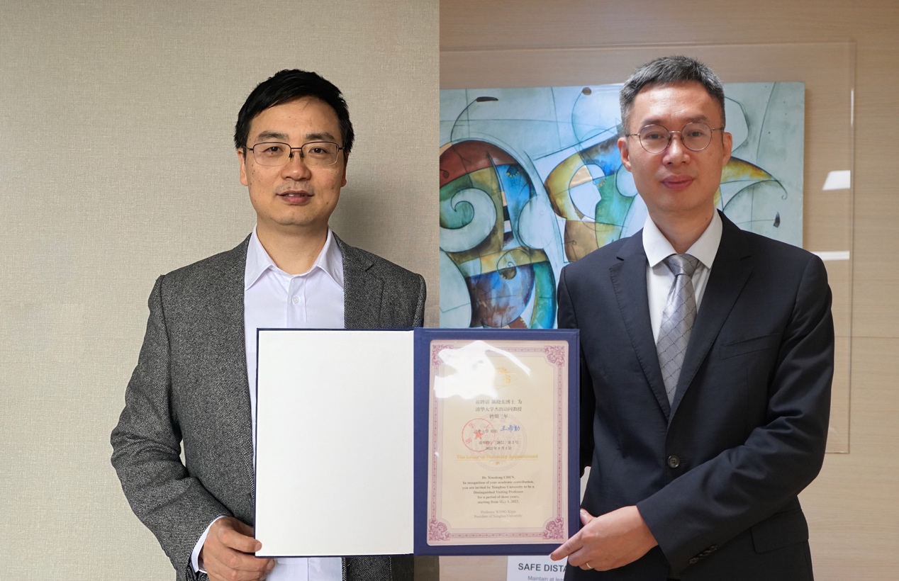 冯雪(左)为陈晓东颁发“beat365英国官方网站杰出访问教授”聘书