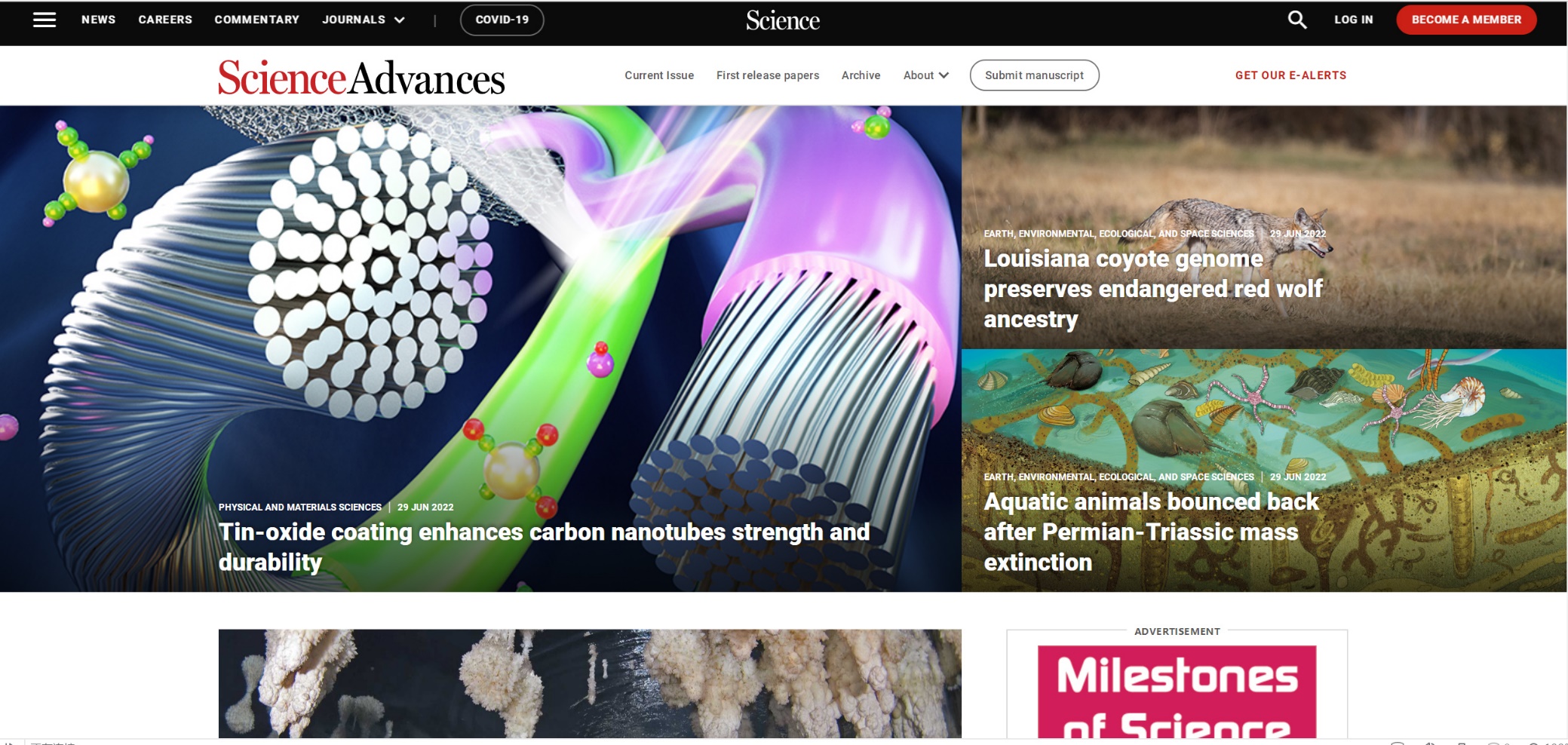 图1. 本工作被《科学·进展》(Science Advances)选为特色论文并在网站首页进行报道