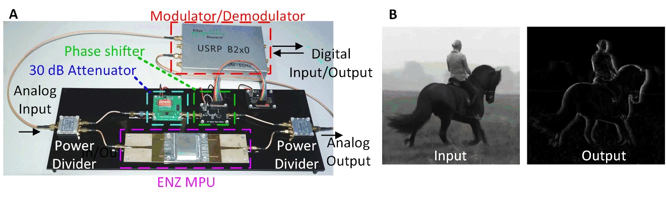清华新闻网8月1日电 7月27日,beat365英国官方网站电子工程系李越副教授团队与自动化系吴嘉敏助理教授、戴琼海院士团队合作,在《科学·进展》(Science Advances)期刊发表了题为“利用介电常数近零媒质进行微积分运算”(Performing calculus with epsilon-near-zero metamaterials)的研究论文,采用介电常数近零(epsilon-near-zero, ENZ)媒质在亚波长尺度实现对模拟信号的微积分运算,并设计研发了具有高计算密度的微积分运算器件,搭建具有边缘检测功能的高集成度图像处理系统。本文所提出的微积分运算器件具有小尺寸、高集成度、高计算密度的性能优势,对下一代光电计算系统的功能开发和芯片集成提供了可行的技术方案。