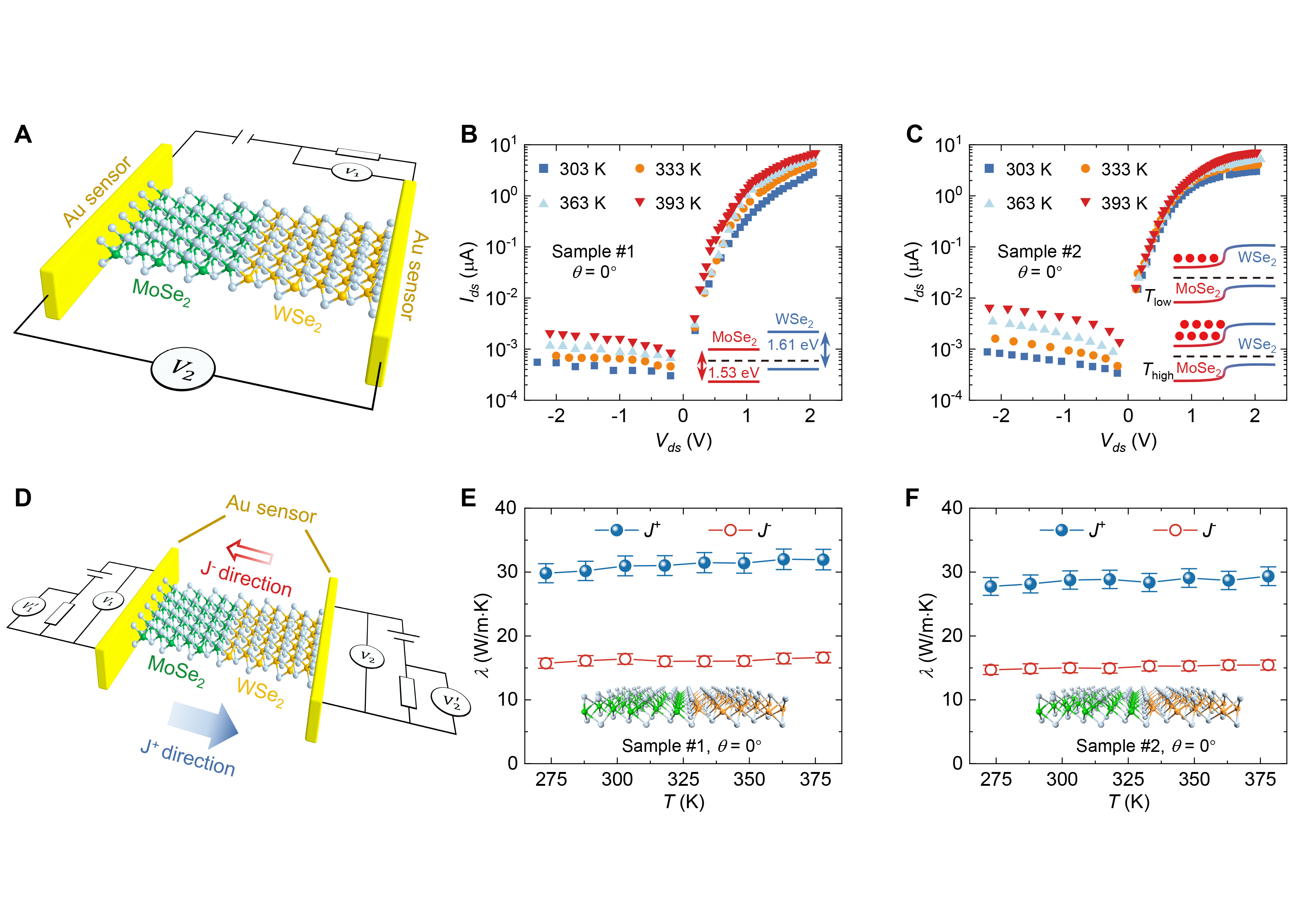图3.MoSe2-WSe2异质结热整流机理揭示