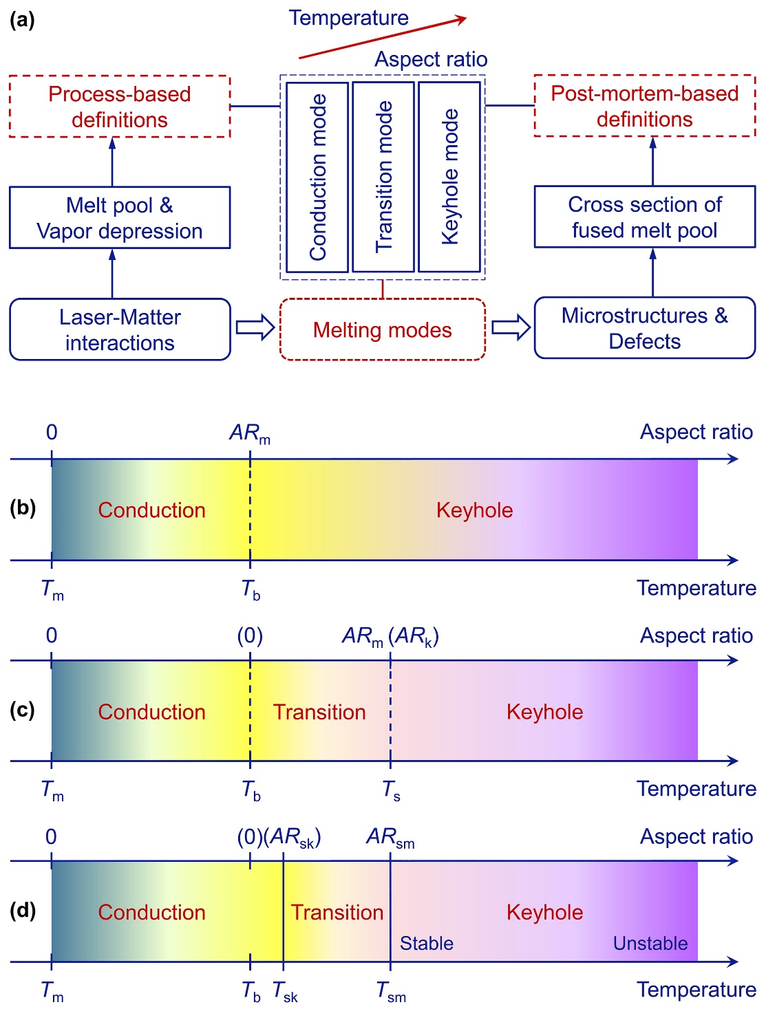 清华新闻网10月24日电 在过去的三十多年中,金属增材制造技术(俗称金属3D打印)快速发展,对航空航天、汽车、国防、化工、医药、能源等领域产生了深刻变革。激光粉末床熔融增材制造(亦被称作激光选区熔化)是其中最广泛使用的技术之一。然而,迄今为止,学术界对激光-物质相互作用的认识还不够深刻,对激光熔化模式的定义仍然很模糊、尚未达成共识。这使得制造无缺陷、微观结构可控的构件仍有困难,限制了激光粉末床熔融增材制造行业的进一步突破。