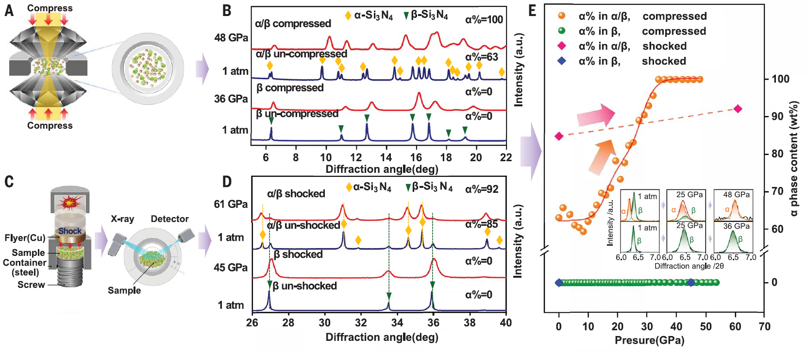图3.在高压压缩过程中,Si3N4样品中的相含量变化