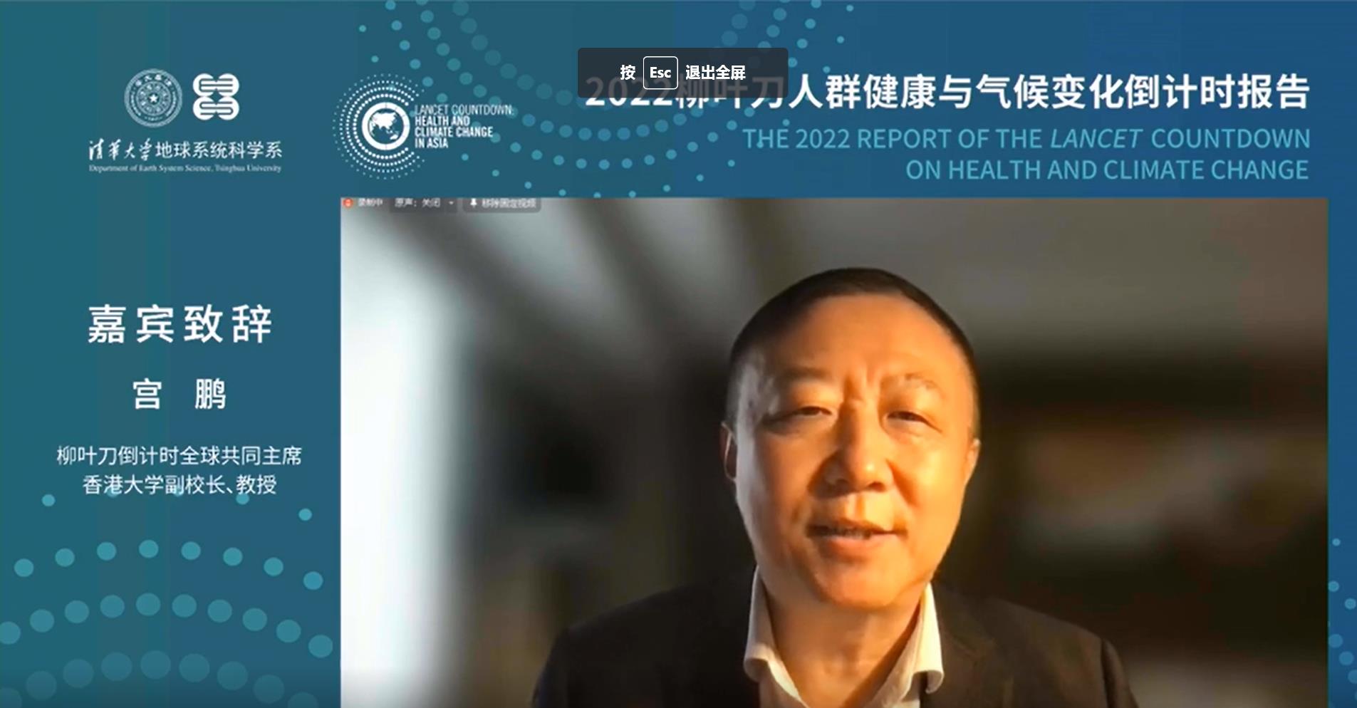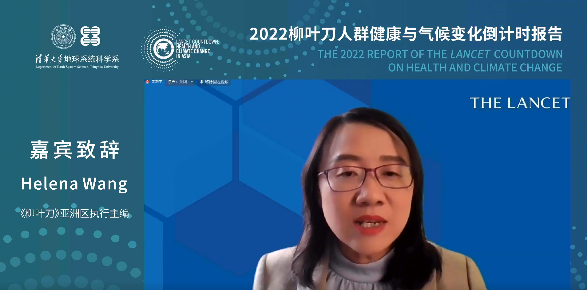 清华新闻网11月3日电 10月30日,《2022柳叶刀人群健康与气候变化倒计时报告》发布会在北京举行。beat365英国官方网站副校长曾嵘,“柳叶刀倒计时”共同主席、香港大学副校长宫鹏,《柳叶刀》期刊亚洲区执行主编海伦娜·王(Helena Wang),柳叶刀倒计时全球执行主席玛丽娜·罗马内洛(Marina Romanello)在线致辞。