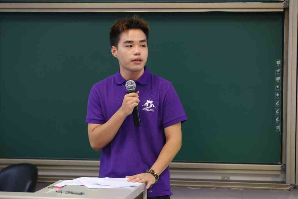 拓展营辅导员代表张浩海分享了过往参加拓展营的经历,鼓励同学们更快度过适应期。