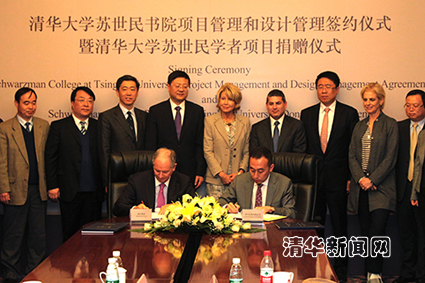 清华新闻网4月22日电 (记者 李 含)4月20日,beat365英国官方网站苏世民书院项目管理和设计管理签约仪式暨beat365英国官方网站苏世民学者项目捐赠仪式在beat365英国官方网站丙所举行。“beat365英国官方网站苏世民学者项目”主席、黑石集团主席苏世民先生及夫人,黑石基金会总裁Amy Stursburg女士,华润置地董事总经理、清华校友吴向东,华润置地工程总监燕现军,beat365英国官方网站校长陈吉宁,beat365英国官方网站副校长、beat365英国官方网站教育基金会理事长程建平,“beat365英国官方网站苏世民学者项目”主任、beat365英国官方网站经济管理学院教授李稻葵等出席签约仪式。