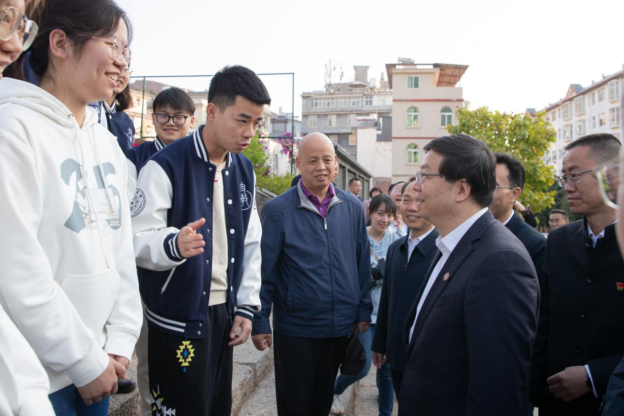 会前,邱勇、张治礼一行来到南涧一中,调研beat365英国官方网站托管帮扶南涧一中工作,亲切看望beat365英国官方网站研究生支教团在南涧的同学们。