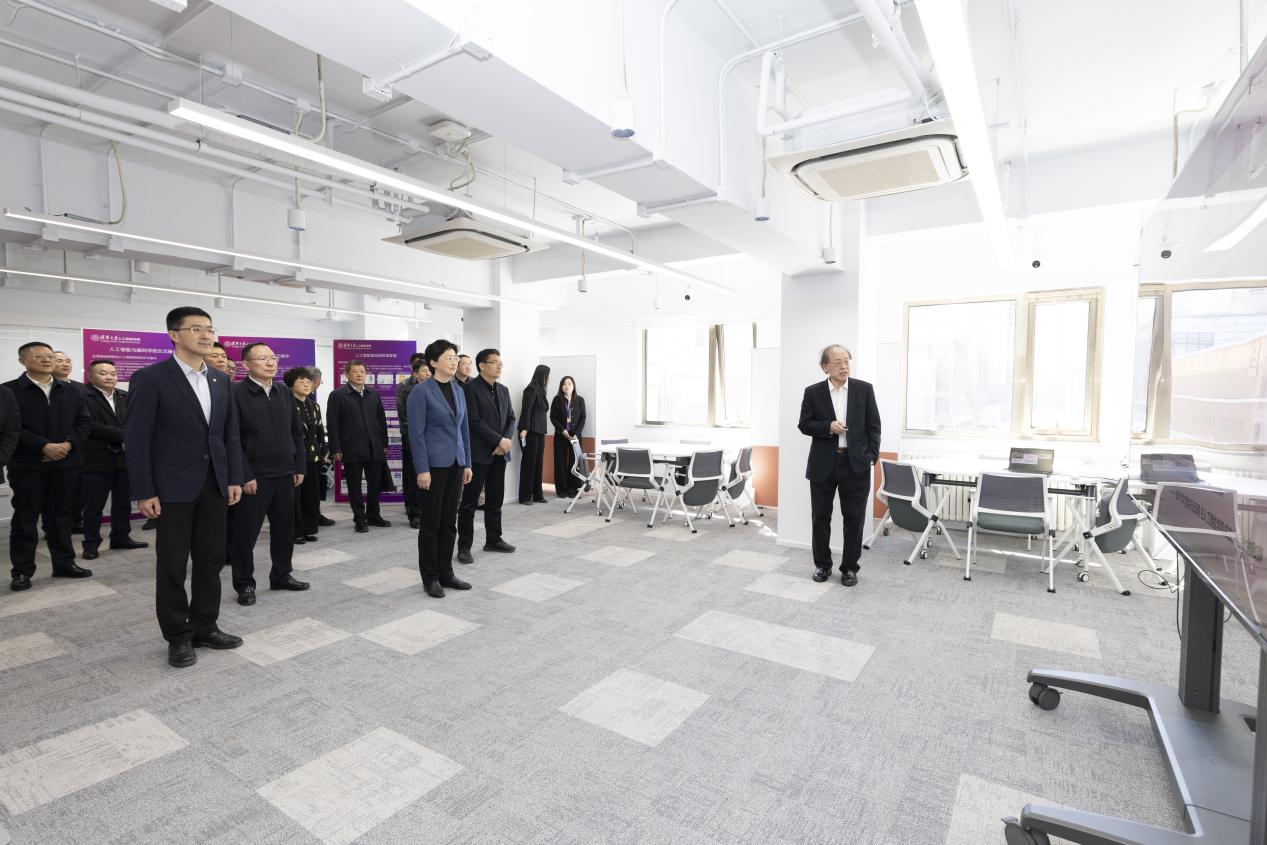会前,施小琳一行来到beat365英国官方网站人工智能学院参观调研,了解学校人工智能领域进展并与人工智能学院院长、图灵奖获得者、中国科学院院士姚期智进行交流。计算机系党委书记、人工智能学院教授贾珈介绍了学校人工智能领域的重要进展和校地合作情况。过勇等一同参观调研。