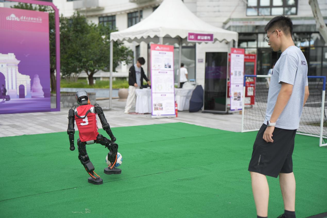 同学们惊喜地发现,在刚刚结束的首届人形机器人足球5V5比赛中夺冠的清华火神队机器人,也是迎新队伍的一员。迎新点还配备了一块触控电子展示屏,新生可以现场登陆“水木汇”微信小程序,体验校园一站式智能化生活服务。签名墙上,同学们纷纷写下畅想与祝福。