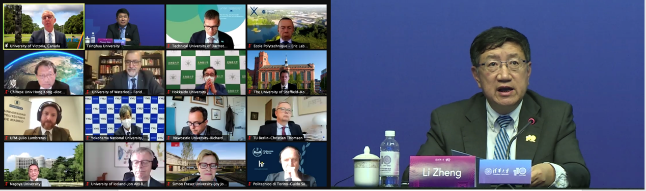 清华新闻网4月22日电(通讯员 朱文曦 张绯阳 马海晶 摄影 常志东)北京时间4月21日晚,大学校长全球论坛第二场分论坛“全球碳中和:大学责任与行动”成功举办。来自中国、法国、英国、德国、加拿大、西班牙、日本、印度、新加坡、斯里兰卡、巴基斯坦等11个国家的近40所高校的代表相聚“云端”,18位校长以主旨演讲和专题讨论两种形式,深入探讨在实现全球碳中和目标指引下,大学在科学研究、人才培养、校园行动、学生活动、公众参与等方面的责任与行动路径。