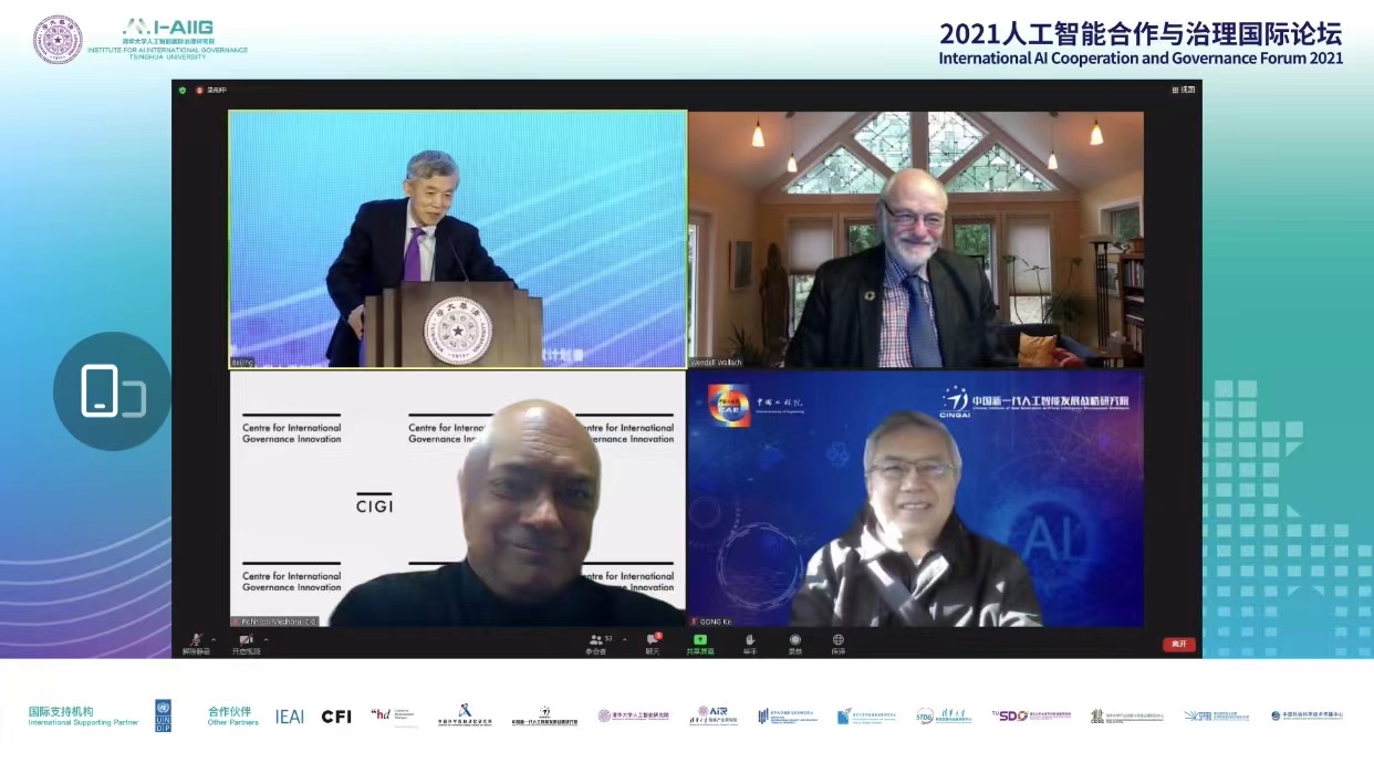 汪永清在开幕辞中表示,中国人工智能治理坚持以人民为中心、坚持增进人类福祉、坚持鼓励科技创新、坚持统筹发展与安全、坚守公平正义理念,契合联合国和G20有关人工智能治理精神,目的是促进人的全面进步、促进经济社会生态可持续发展。中国政府一向主张加强人工智能发展与治理国际交流合作,倡导共商、共建、共享解决全球数字治理问题,携手打造开放、公平、公正、非歧视的数字发展环境。汪永清指出,面对人工智能发展带来的风险挑战,国际社会必须携起手来、共同应对,不断提升人工智能全球治理水平。要推动开放包容,秉持人类命运共同体理念,摒弃强权霸道逻辑,摆脱意识形态偏见,最大限度地增强合作机制、理念、政策的开放性和包容性,构建人工智能全球治理的负责任格局。要推动协商互鉴,坚守和平、发展、公平、正义、民主、自由的全人类共同价值,建立起跨文化信任,尊重和包容差异,统筹发展与安全,兼顾效率与公平,防止治理规则政策取向顾此失彼、避重就轻和歧视性排他性,共建具有广泛共识的全球人工智能治理规则和伦理标准的平衡性框架。要推动共治共享,创建人工智能治理各方参与的开放性平台,通过跨学科、跨领域、跨地区、跨国界的交流合作,推动相关各方遵循基本科技伦理,把进步的价值取向嵌入人工智能数理模型,形成人工智能向善的力量,推动形成人工智能治理的最佳实践,形成各方积极参与的共治共享良好局面。