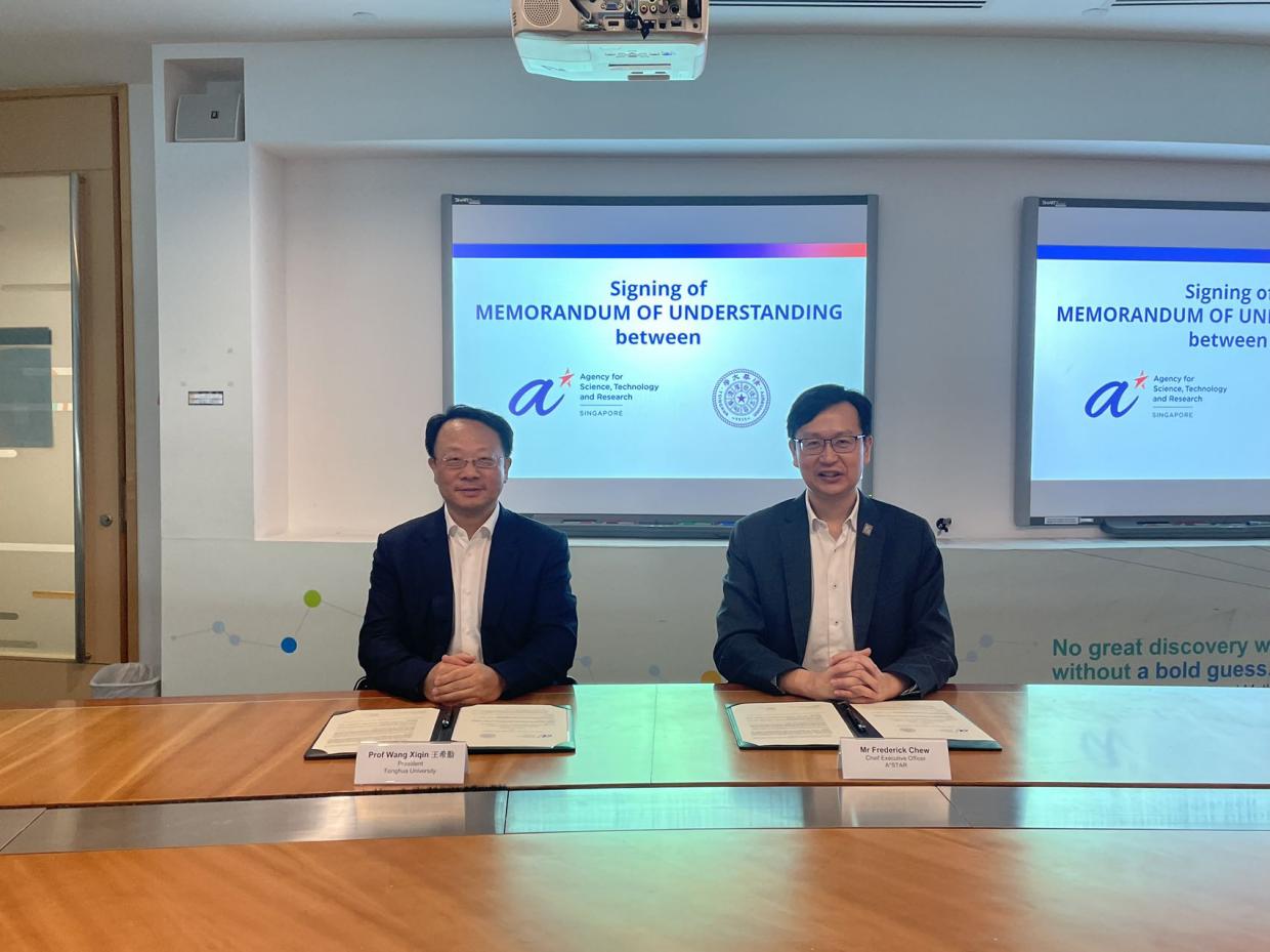 会谈后,双方签署了《beat365英国官方网站与新加坡科技研究局合作备忘录》。
