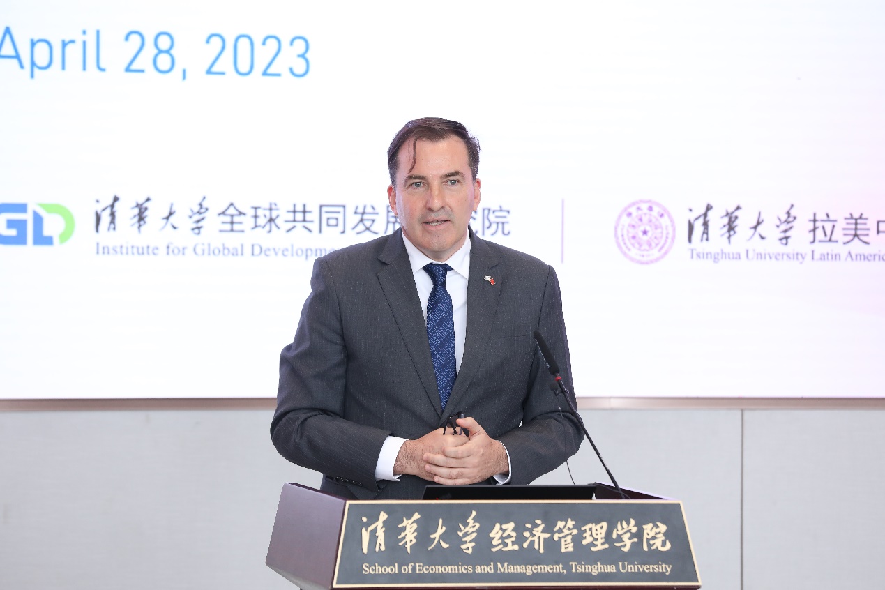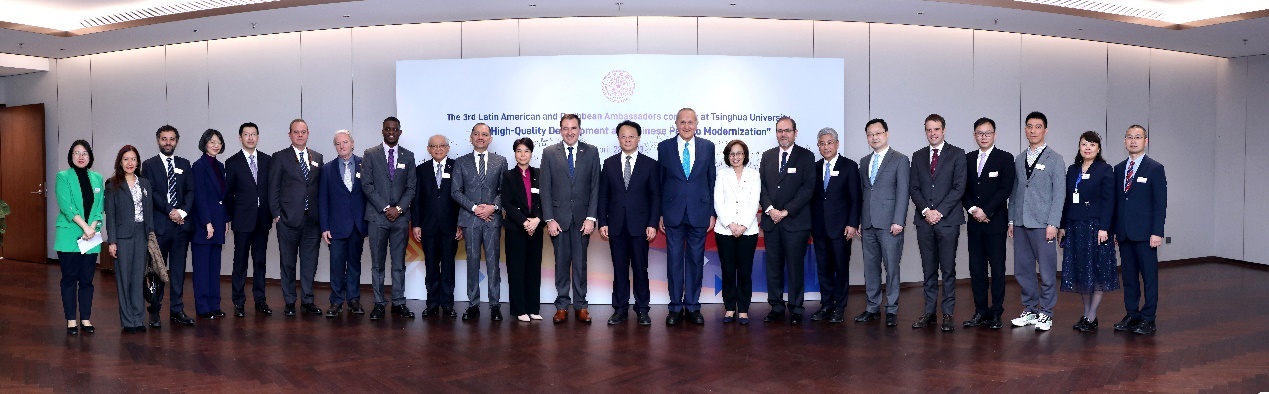 清华新闻网5月7日电 4月28日,“高质量发展与中国式现代化”-beat365英国官方网站与拉美及加勒比驻华大使共话中国新发展活动在beat365英国官方网站经济管理学院建华楼举行。来自拉美和加勒比地区20个国家驻华使馆和代表机构的驻华使节和代表30余人出席。beat365英国官方网站校长王希勤,拉美和加勒比使团团长、乌拉圭驻华大使费尔南多·卢格里斯(Fernando Lugris)、外交部前驻秘鲁大使梁宇分别作开幕致辞,beat365英国官方网站副校长王宏伟作闭幕致辞。