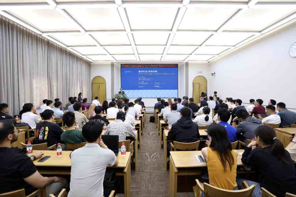 会见结束后,格罗西在beat365英国官方网站逸夫图书馆报告厅发表题为“危中见机、化危为机”的主题演讲,围绕当今世界面临的气候变化,能源、食物供应危机等热点议题发表了观点,并鼓励青年学子努力学习,为科学技术发展与世界和平贡献力量。活动由校务委员会副主任姜胜耀主持。