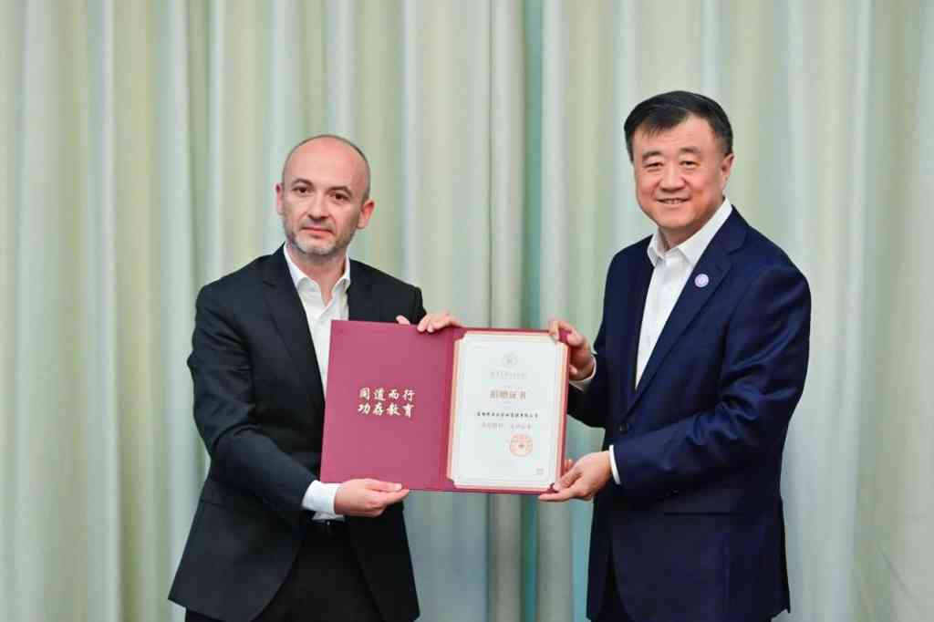 奥斯卡·加西亚·马塞拉斯与袁桅签署捐赠协议,杨斌向奥斯卡·加西亚·马塞拉斯颁发捐赠证书。