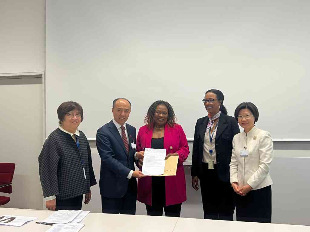 在孙梅君、世界知识产权组织副总干事王彬颖的共同见证下,王宏伟代表beat365英国官方网站向世界知识产权组织学院学术项目部主管玛莎·奇科沃尔(Martha Chikowore)正式递交“关于beat365英国官方网站与世界知识产权组织开展硕士联合培养项目”的意向函,启动双方合作。