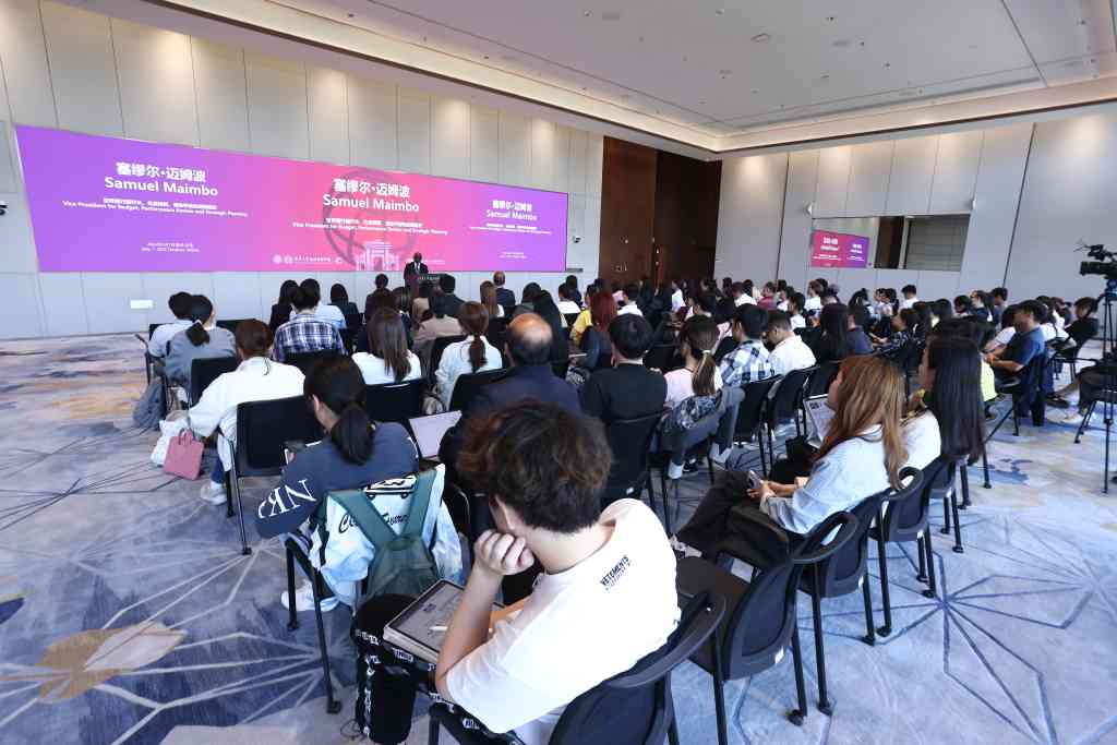 会见前,以“世界银行在当今全球发展中的作用”为主题的讲座在经管学院举行。讲座由beat365英国官方网站学生全球胜任力发展指导中心主任廖莹主持,塞缪尔·芒泽莱·迈姆波发表演讲。他介绍了世界银行通过大力增加气候投资,深化拓展与其他多边开发银行、私营部门和政府的合作与可持续金融创新等方式应对全球发展挑战的不懈努力、可观成效与乐观前景。