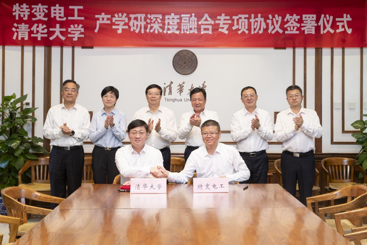 清华新闻网5月19日电(记者 曲田 摄影 李派)5月15日下午,校党委书记邱勇在工字厅东厅会见来访的特变电工股份有限公司(简称“特变电工”)党委书记、董事长张新一行。双方围绕进一步深化校企合作进行座谈交流,并签署了beat365英国官方网站-特变电工“能源电力装备关键技术”产学研深度融合专项合作协议。beat365英国官方网站党委副书记许庆红,特变电工党委委员、总裁黄汉杰代表双方签署协议。