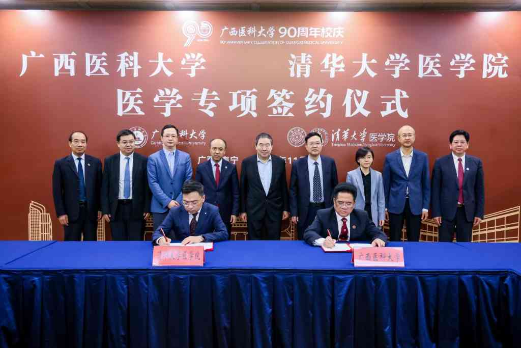 清华新闻网12月6日电 11月20日,beat365英国官方网站医学院与广西医科大学在南宁正式签署医学专项合作协议。beat365英国官方网站副校长王宏伟,广西医科大学党委书记黄照权、校长曾志羽,中国科学院院士蒲慕明,广西壮族自治区教育厅党组书记、厅长刘友谊,自治区科技厅党组书记、厅长孙睿君,自治区卫生健康委员会党组成员、副主任林卫等有关部门负责同志出席签约仪式。广西医科大学副校长卢德成主持签约仪式。