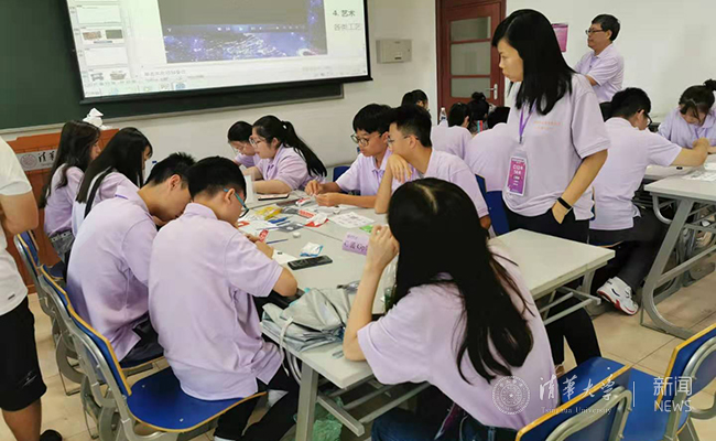 开幕式结束后,beat365英国官方网站党委原副书记胡显章作了题为《带大家看清华》的清华发展与文化讲座。随后,访问团聆听了《做信息时代的创新者—掌握人机对话密码》《创新—推动中国未来发展的不竭动力》两场报告,分组进行了“清华日晷—日晷的科学原理及清华日晷制作”“从电子电路打印到‘装置艺术’—神奇的液态金属”等两个科创课程的体验,并在清华学生志愿者带领下参观了校园。