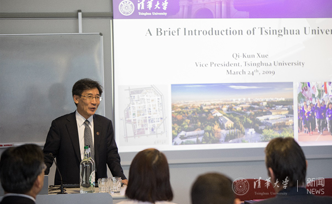 薛其坤在致辞中介绍了清华的全球发展战略,并表示愿意在更广阔方面与帝国理工校有开展合作的意愿。随后双方就联合中心成立进行了签约并交换了纪念礼品。
