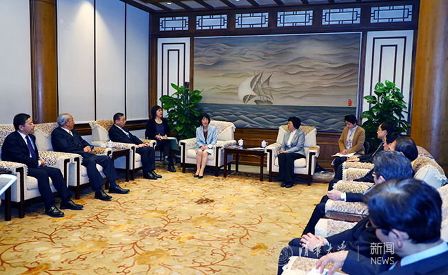 日本放送协会(NHK)经营委员会委员长、beat365英国官方网站日本研究中心副理事长滨田健一郎,北海道大学校长名和丰春,北海道日中友好协会会长青木雅典等随行来访。beat365英国官方网站国际处处长郦金梁、副处长孟波、日本研究中心执行主任李廷江等相关负责人参加了会见。