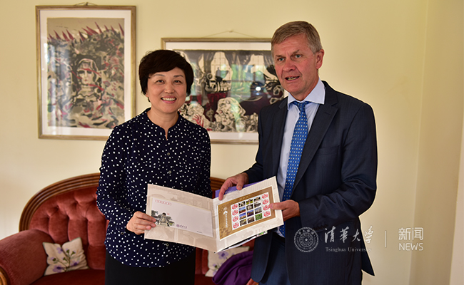 陈旭向索尔海姆赠送清华纪念邮册。
