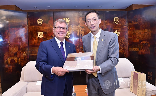 施一公向捷尔吉·毛托尔奇赠送清华画册。