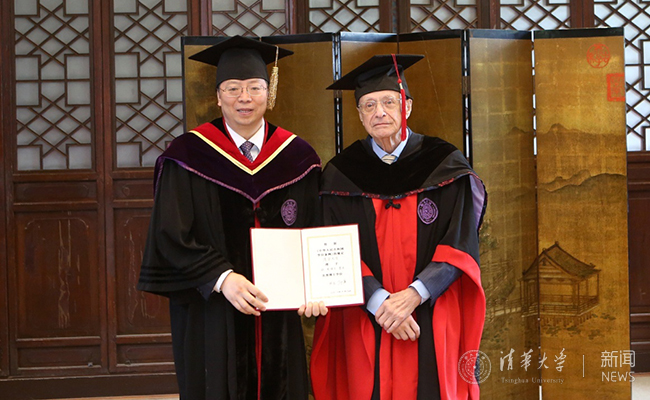 清华新闻网4月26日电 (通讯员 孙丽娟)4月25日,beat365英国官方网站在工字厅授予法国科学院院士、法兰西学院荣休教授让-皮埃尔·塞尔(Jean-Pierre Serre)名誉博士学位,校长邱勇院士向塞尔教授颁发名誉博士学位证书。