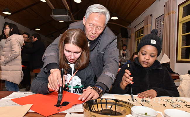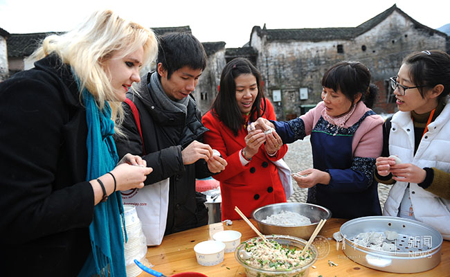 回忆起那七天的时光,陈鲁君仍意犹未尽:“在金华过年真是太棒了,我的‘妈妈’准备了一大桌子的菜,我几乎都没有见过,很多的虾和螃蟹,还有写着大红字的馒头,真是满足了我对中国美食和中华文化的向往。”传承千年的正宗“年味”,就在这一桌桌饭菜香,一副副新春联,一支支红灯笼,一台台晚会当中,传入了国际学生们的心里;而当地的村民也从在与国际学生朝夕相处的日子里,体会到传承与普及中华文化,便是保护中华民族的精神家园。金华市外侨办的实践活动负责人徐淑芳说:“正是透过他们的眼睛,让村民们看见了精神上的‘珍宝’!”