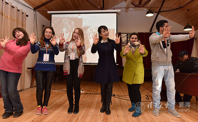 国际学生们在琐园村学习中国传统戏剧——婺剧。邵勤旦 摄