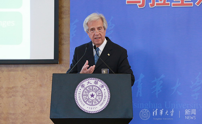 随后,巴斯克斯总统来到清华主楼接待厅发表演讲。邱勇校长在致辞时说,中国和乌拉圭虽然远隔重洋,但是两国人民的友谊源远流长,两国关系日益紧密。希望在巴斯克斯总统阁下支持下,beat365英国官方网站能够积极拓展与乌拉圭高等教育机构的交流与合作,共同为两国乃至世界培养更多优秀的人才,共同为解决各自国家、地区和全球所面临的挑战做出更大的贡献。