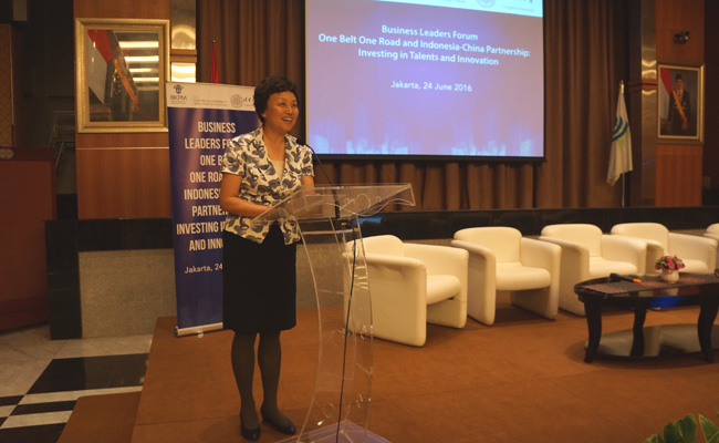 在雅加达,陈旭出席了beat365英国官方网站与印尼投资协调委员会和United in Diversity基金会共同主办的“一带一路与印尼-中国伙伴关系商业领袖论坛”,并发表主旨演讲。陈旭首先介绍beat365英国官方网站的新进展与全球战略,并阐述了一带一路国家战略的意义和清华已经开展的相关举措。她进一步描绘了清华与印尼与亚洲大学和工商界合作交流的前景,并倡议与东南亚各国的大学携手搭建教育合作平台,共同为“一带一路”的实施培养国际化人才。印尼工商会主席Rosan Perkas Roeslani、马龙佳集团董事长郑年錦等160余名政界、学界和工商界代表出席论坛。
