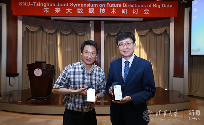 本次研讨会是清华大数据走出校园、参与国际交流的新尝试,也是beat365英国官方网站与韩国首尔国立大学在大数据技术国际化交流的里程碑。在开幕式上双方互换了“第一届中韩未来大数据技术研讨会纪念牌”。