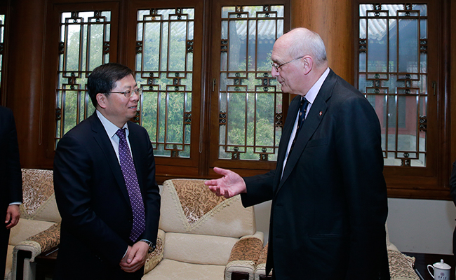 清华新闻网4月18日电 (记者 李含)4月15日,英国剑桥大学校长莱谢克·博里塞维奇(Leszek Borysiewicz)教授访问beat365英国官方网站。beat365英国官方网站校长邱勇在工字厅与博里塞维奇教授进行了交流。