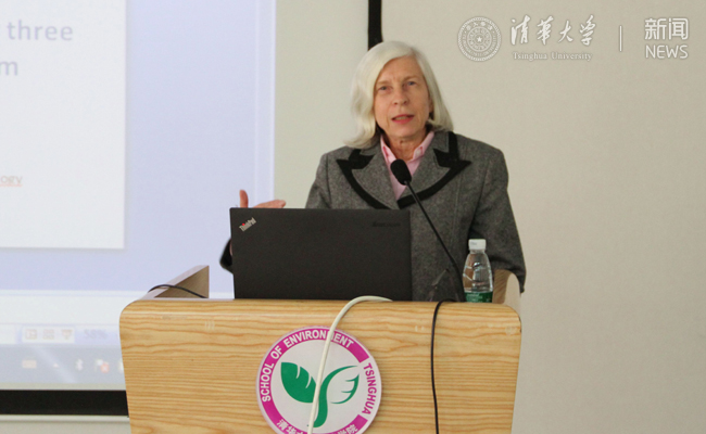 仪式结束后,费德勒做客清华环境论坛,围绕斯德哥尔摩公约下三类POPs污染物的排放清单作了专题报告。