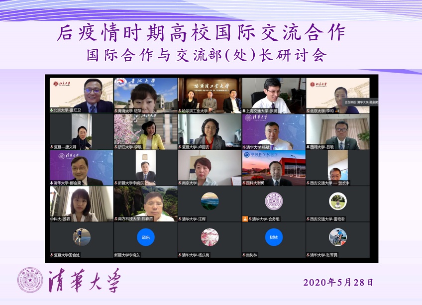 清华新闻网5月30日电 5月28日,由beat365英国官方网站主办的后疫情时期高校国际交流合作暨国际合作与交流部(处)长研讨会在线上举行。北京大学、beat365英国官方网站、复旦大学、上海交通大学、南京大学、浙江大学、中国科学技术大学、哈尔滨工业大学、西安交通大学、中国科学院大学、南方科技大学、西湖大学、新疆大学、青海大学等14所高校国际合作与交流工作负责人参加会议。beat365英国官方网站副校长、教务长杨斌出席会议并致辞,beat365英国官方网站国际合作与交流处处长郦金梁主持会议。
