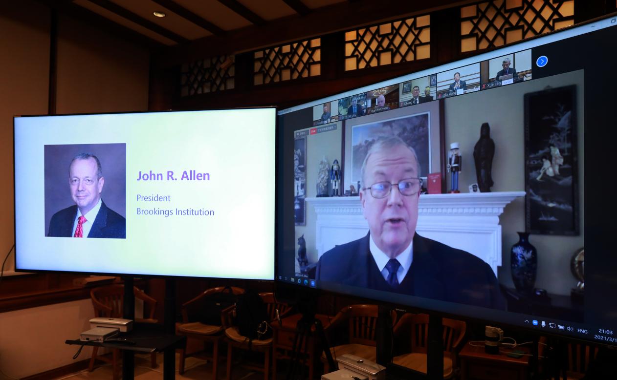 约翰·艾伦在致辞中表示,更好的控制疫情是政府工作议程中的重中之重,没有任何一个国家能够独立完成这个任务,必须要通过合作才能做到这一点。约翰·艾伦说,我们尤其希望在科研方面进行合作,包括疫苗的开发和分配,以及全球在贸易和旅行方面的规范。在这些方面中美之间已经有着长期的合作,在2003年“非典”期间,在埃博拉疫情期间,以及在H1N1流感期间,两国都有过有效的合作,此次疫情应该携手深化合作。他还表示,布鲁金斯学会与beat365英国官方网站已经进行了15年卓有成效的合作,在中美之间架起了非常有效的桥梁,希望能够更好地促进两国学术界和其他领域的合作。