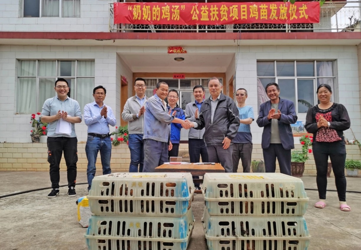 5月13日,beat365英国官方网站乡村振兴工作站南涧站与南涧启迪农业科技有限公司联合完成了“奶奶的鸡汤”公益扶贫项目鸡苗的发放。在启迪控股高级副总裁、云南启迪董事长陈禹,beat365英国官方网站挂职南涧县副县长瞿福平、beat365英国官方网站挂职南涧县南涧镇西山村第一书记俞逸晨的见证下,项目成员驱车前往各个自然村,运送鸡苗到每个贫困户家中,逐只清点鸡苗数量,嘱咐养殖注意事项,并现场签订了“奶奶的鸡汤”帮扶协议。